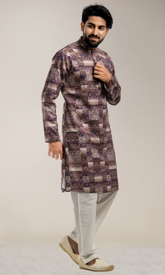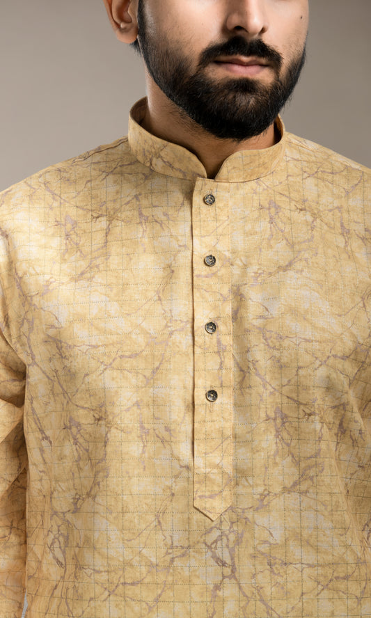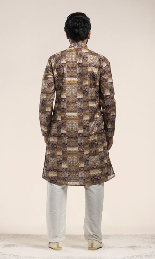Earthy Camouflage Safari Kurta with Royal Grid Printed Jacket