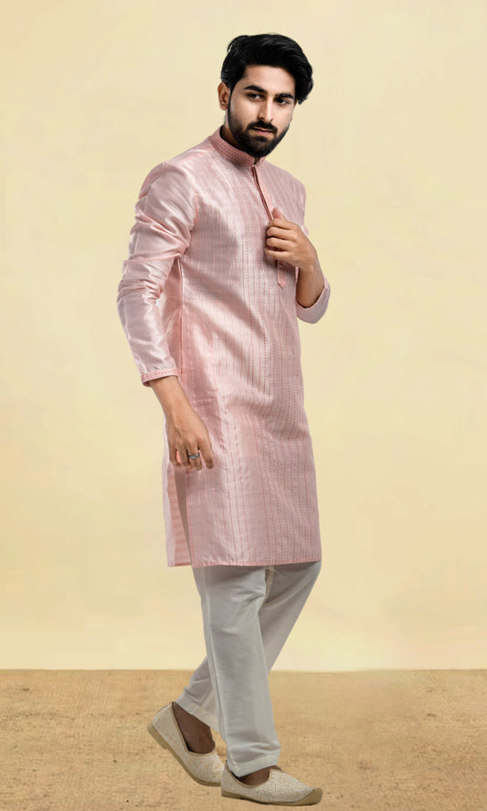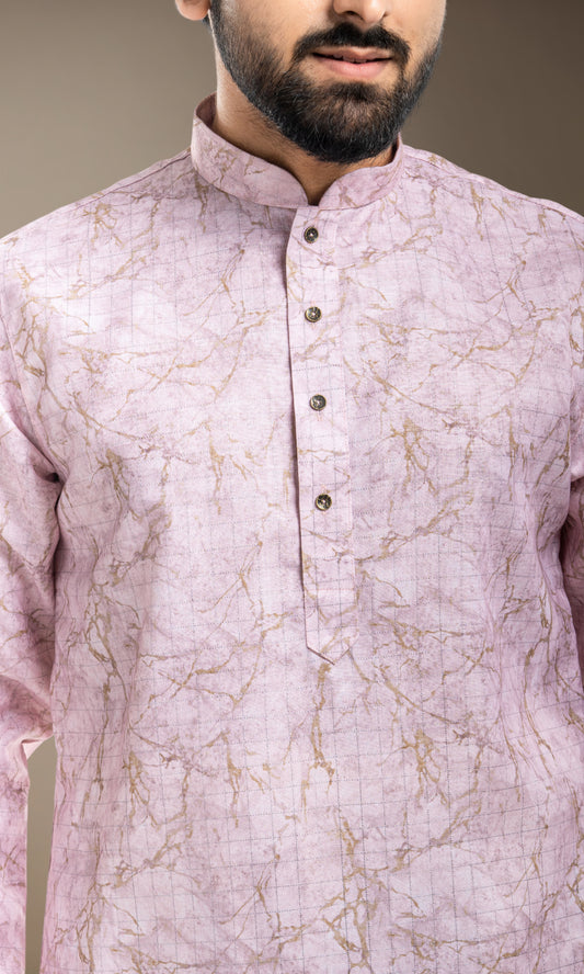 Pastel Mist Pink Kurta with Embossed Zigzag Detailing