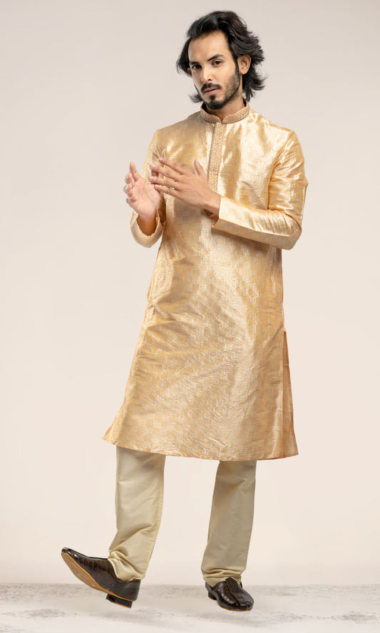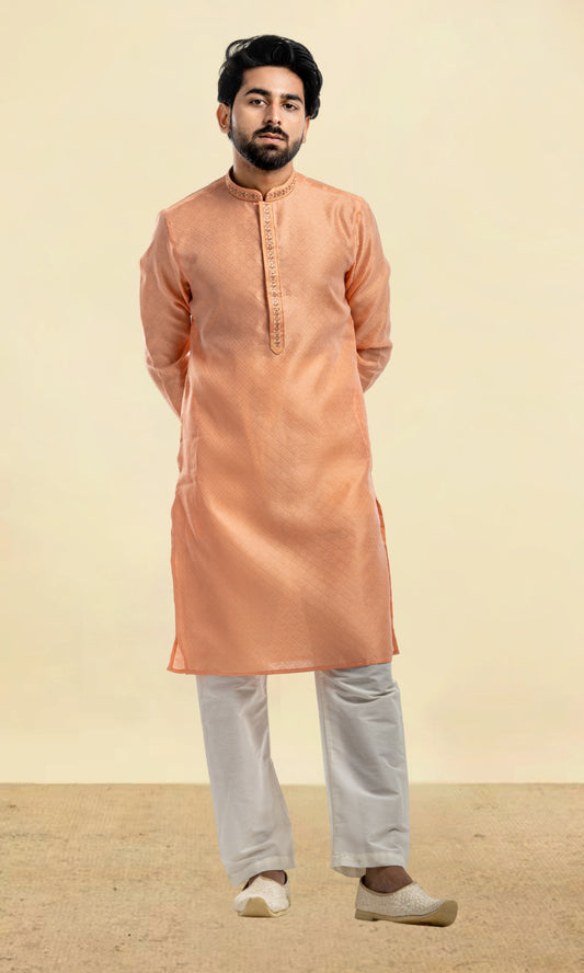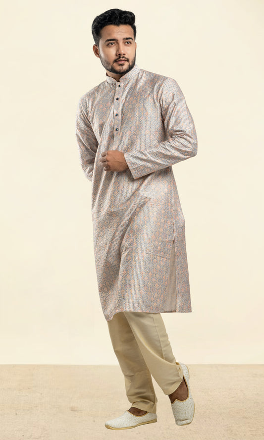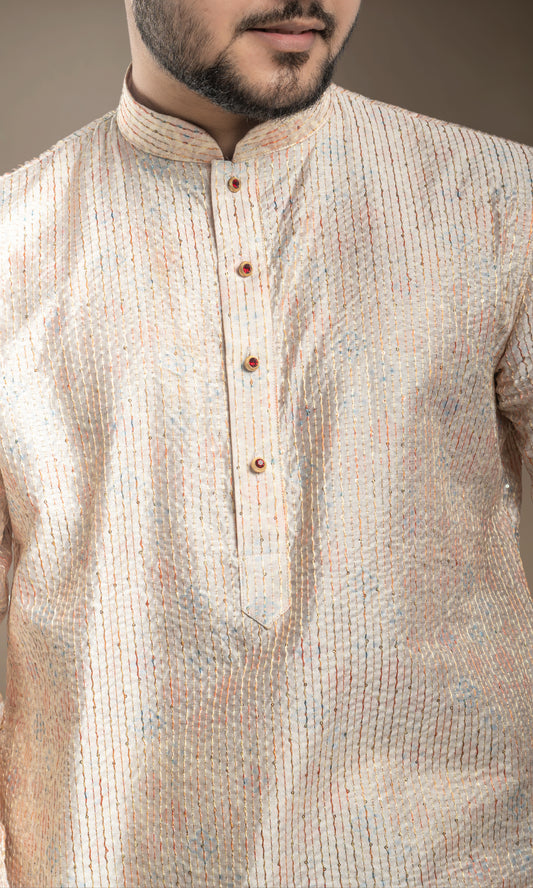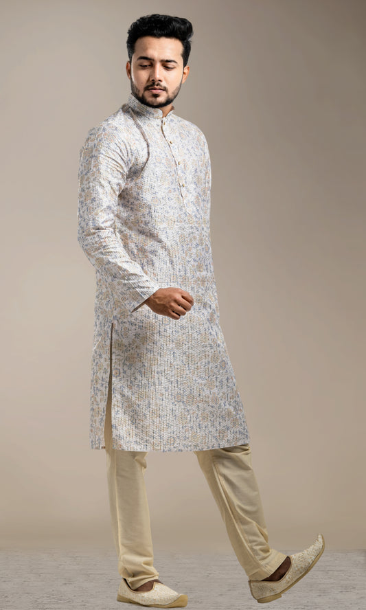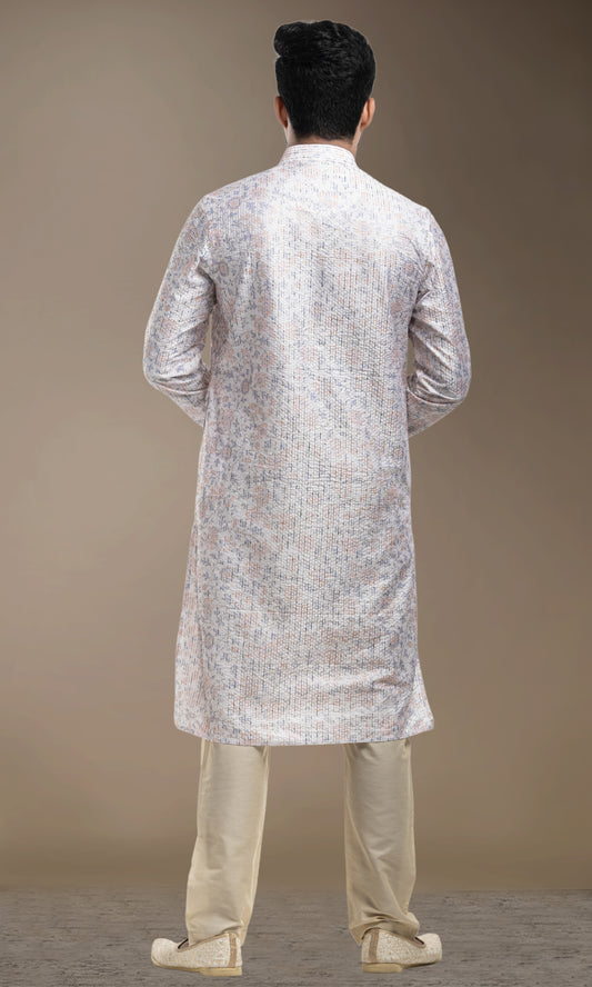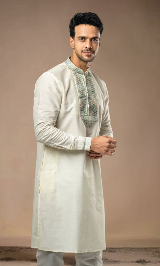Ivory Ember Kurta with Pixelated Heritage Detailing