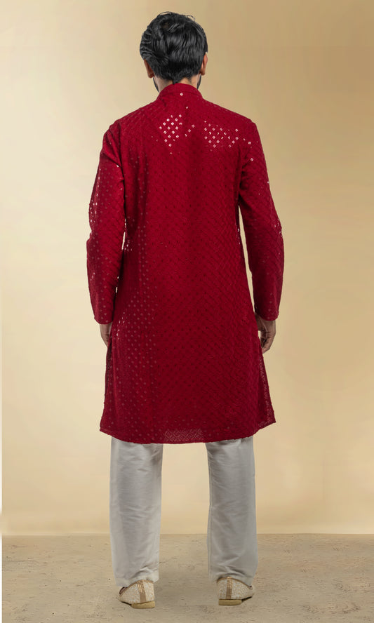 MAROON SEQUIN EMBELLISHED CHIKANKARI KURTA