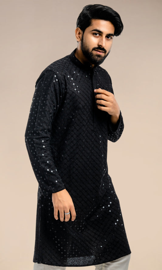 BLACK SEQUIN EMBELLISHED CHIKANKARI KURTA