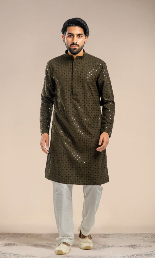 MEHENDI SEQUIN EMBELLISHED CHIKANKARI KURTA