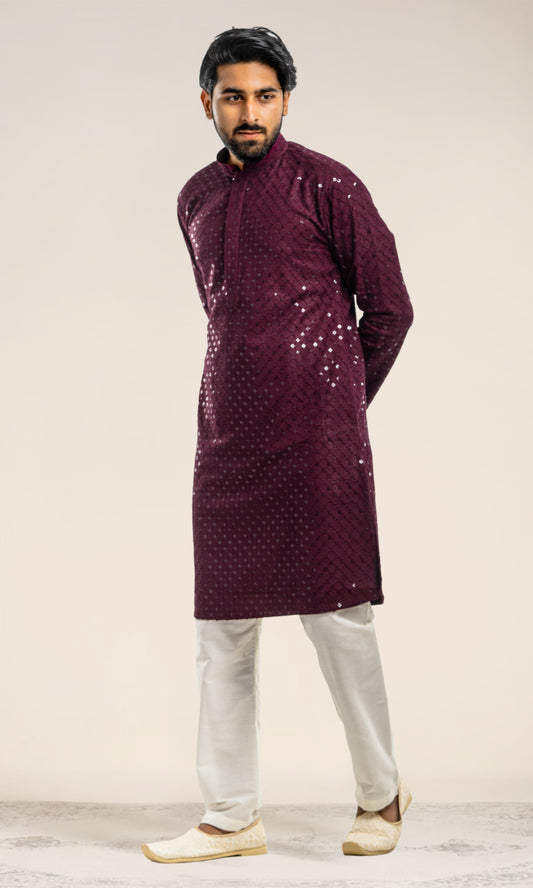 WINE SEQUIN EMBELLISHED CHIKANKARI KURTA