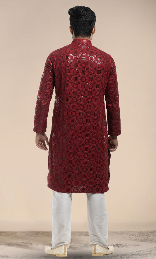 MAROON SEQUIN EMBELLISHED CHIKANKARI KURTA