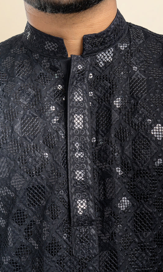 BLACK SEQUIN EMBELLISHED CHIKANKARI KURTA
