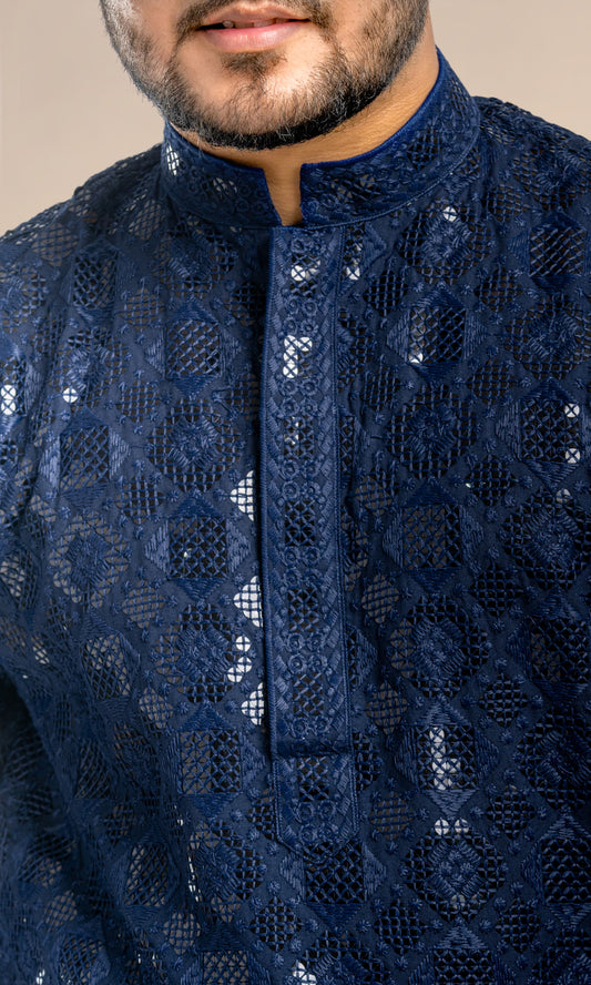 NAVY BLUE SEQUIN EMBELLISHED CHIKANKARI KURTA