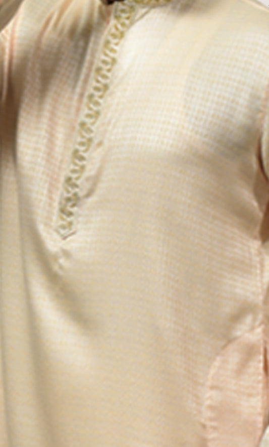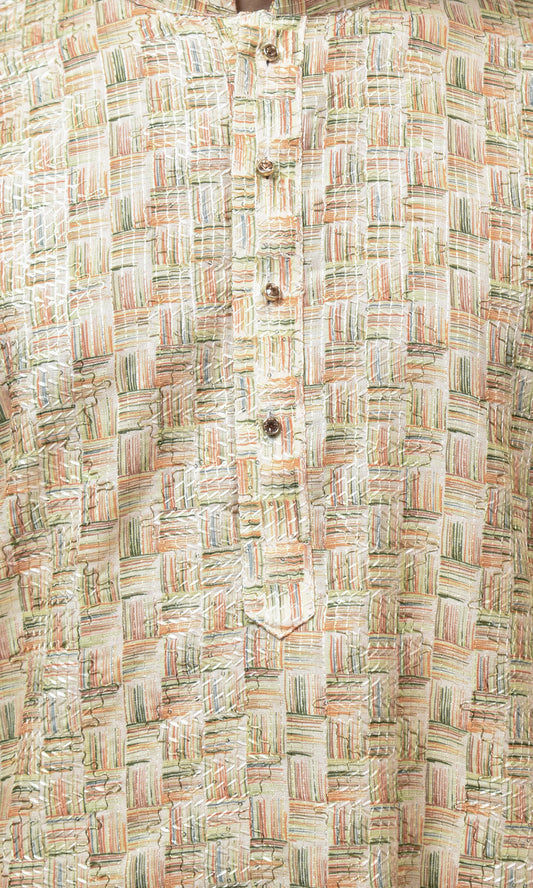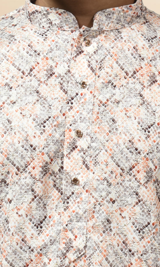 Soft Peach & Grey Pixel Patterned Kurta with Subtle Shimmer