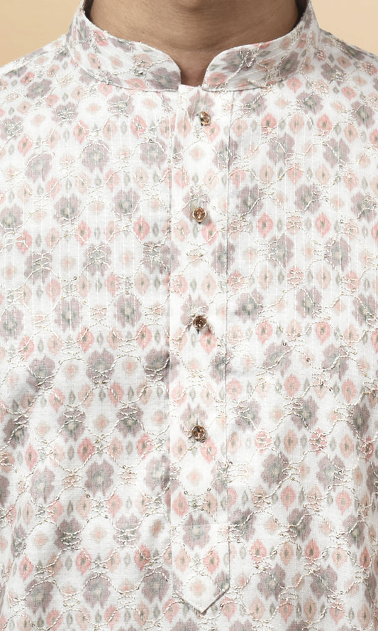 Pastel Pearl Dream Kurta with Vintage Rose Motifs