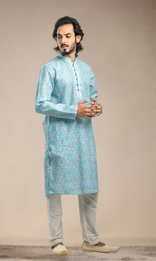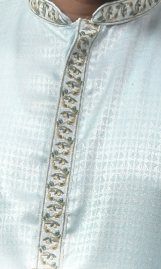 Pastel Subtle Sky Kurta with Delicate Filigree Weave