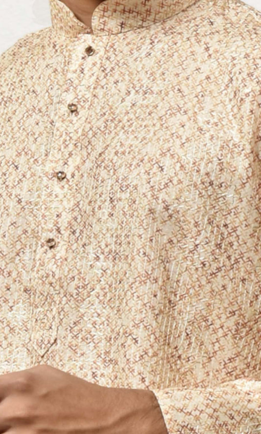 Earthy Ochre Kurta with Intricate Crosshatch Embroidery