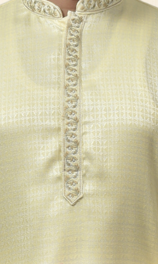 Golden Glow Lemon Radiance Kurta with Floral Embroidery