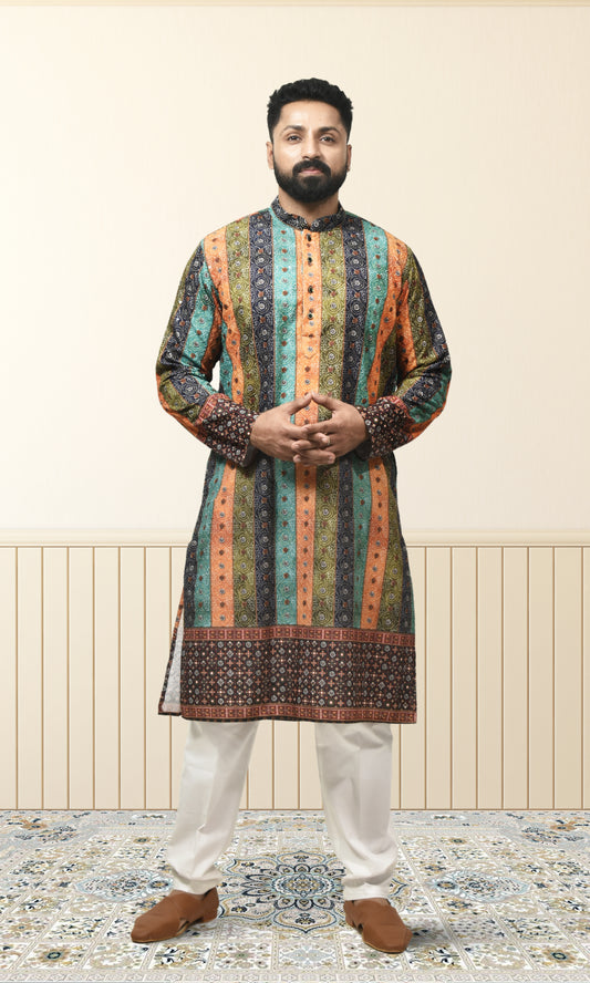 Multicolor Bohemian Royale Kurta with Rustic Charm