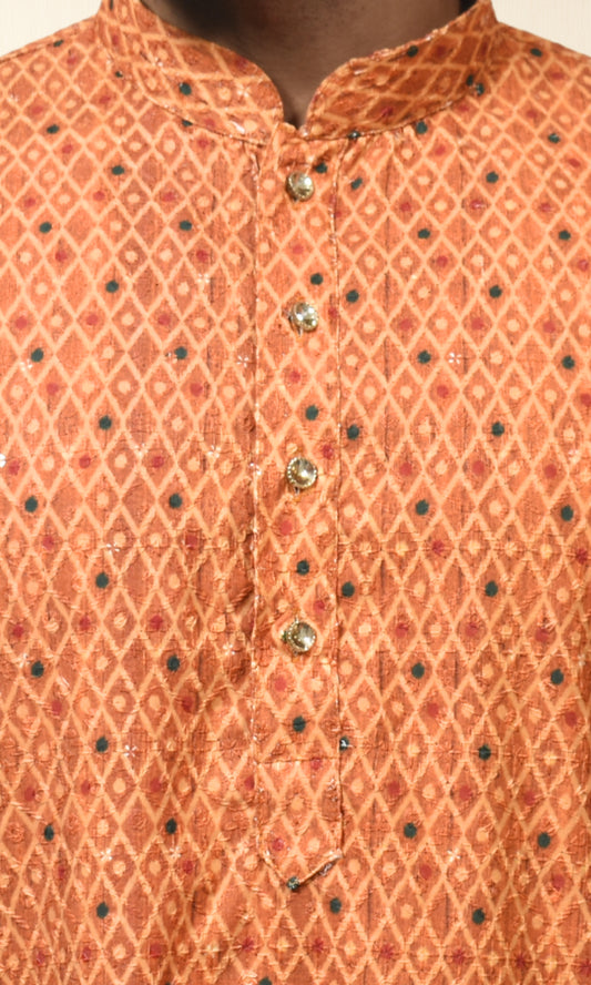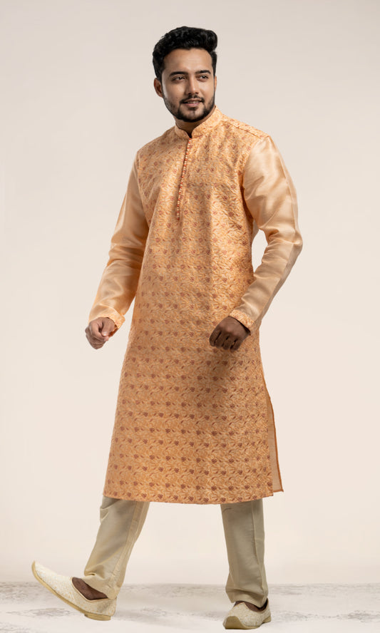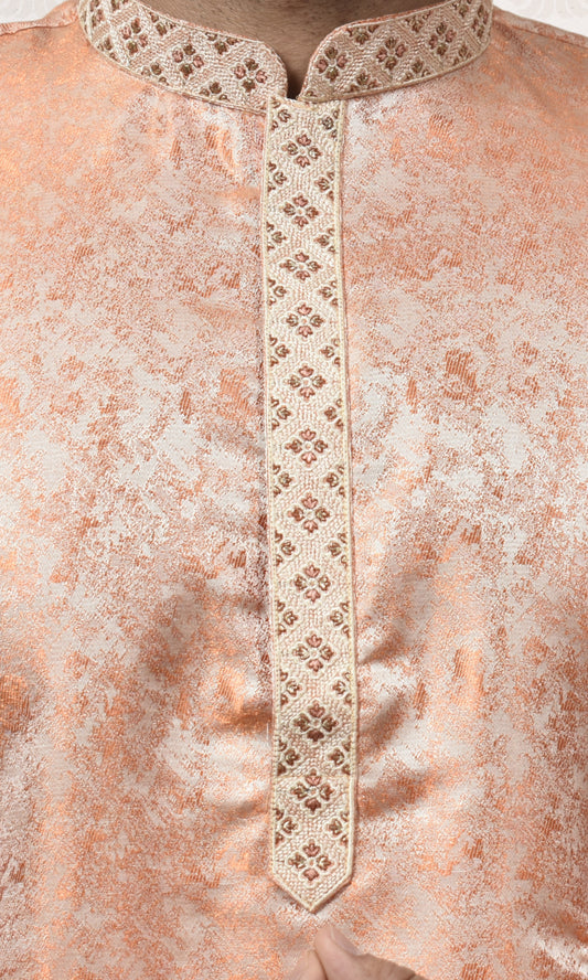Silken Blush Orange Kurta with Royal Embossed Detailing
