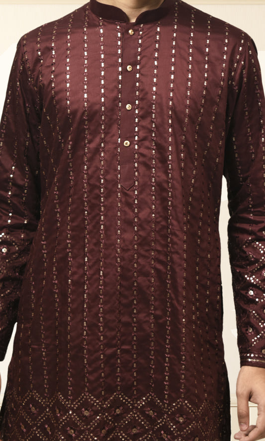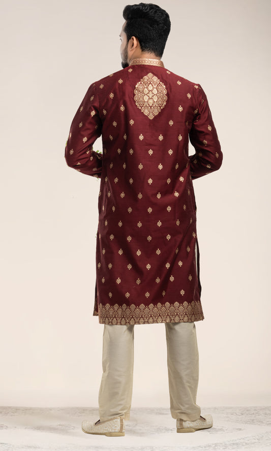 Mulberry Wine Kurta with Luminous Gold Embroidery