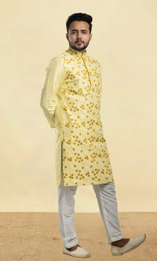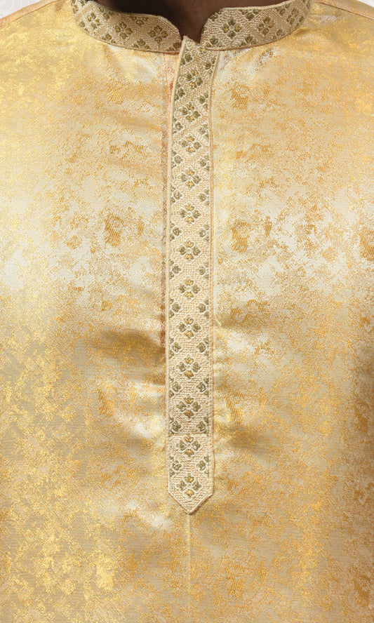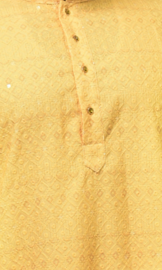 Silken Blush Yellow Ochre Kurta with Royal Embossed Detailing