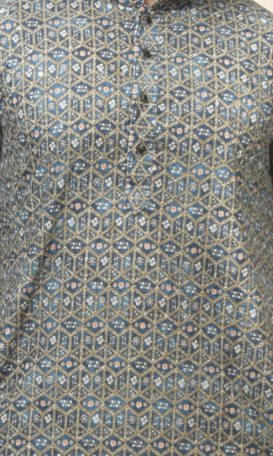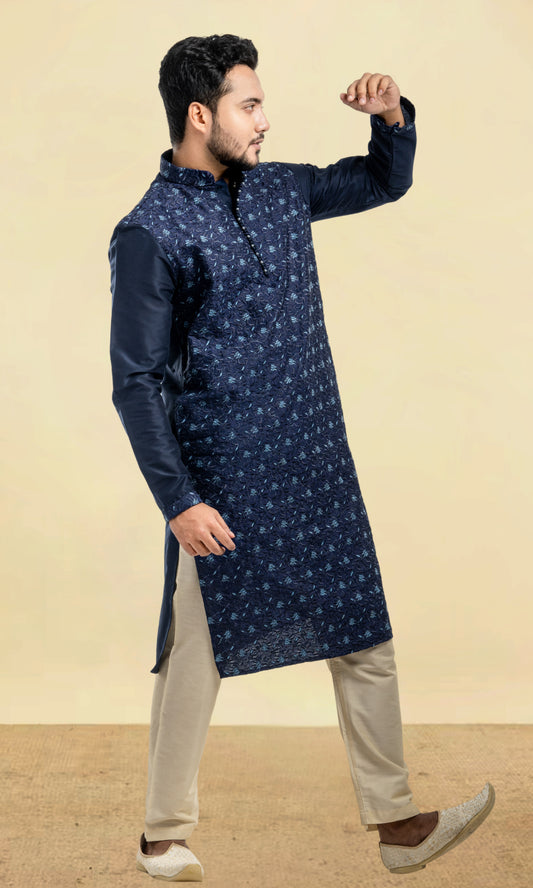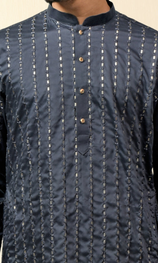 Starlit Navy Kurta with Luminous Gold Embroidery