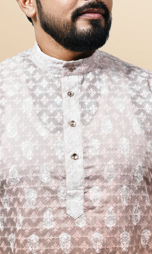 Ivory to Sand Stone Brown Ombre Kurta with Regal Threadwork