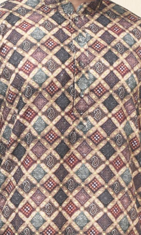 Majestic Lattice Kurta in Black & Multicolour with Timeless Artisan Detailing
