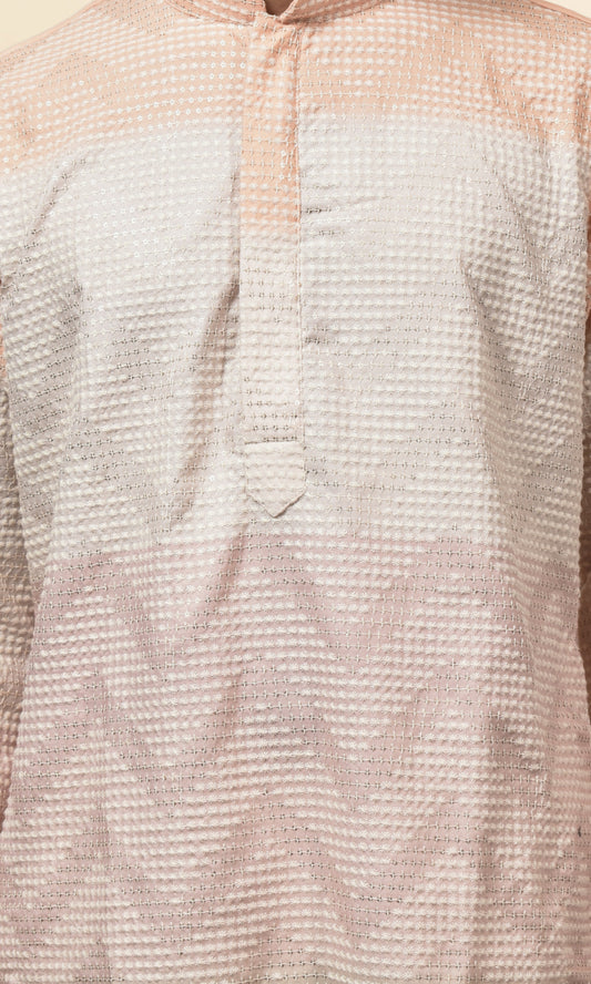 Blush & Ivory Ombre Kurta with Subtle Chevron Weaves & Sequin Embellished