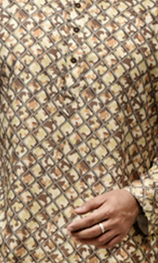 Earthy Camouflage Safari Kurta with Royal Grid Printed Jacket