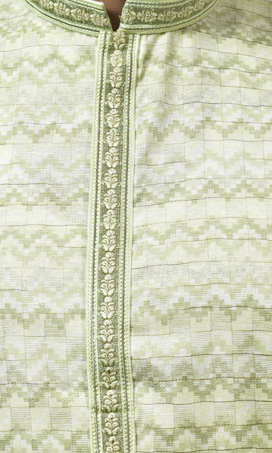 Pastel Mist Green Kurta with Embossed Zigzag Detailing
