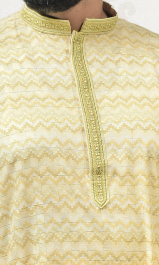 Silken Blush Yellow Ochre Kurta with Royal Embossed Detailing