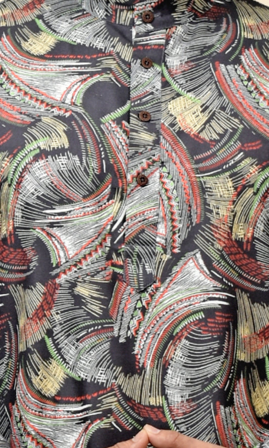 Majestic Lattice Kurta in Black & Multicolour with Timeless Artisan Detailing