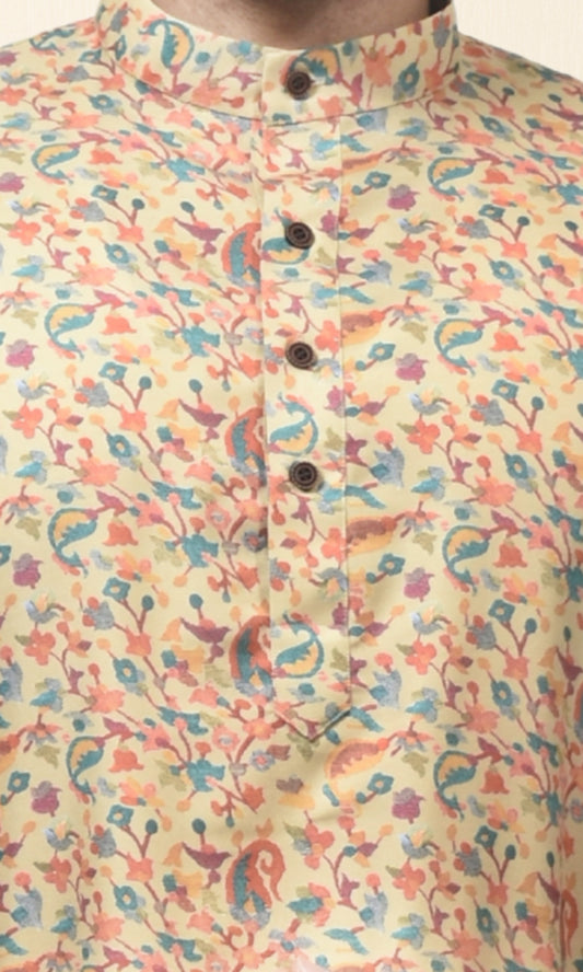 Golden Glow Lemon Radiance Kurta with Floral Embroidery